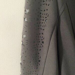 Cute Laundry black jacket with cutout detail on the sleeves. Looks great wtith a skirt, pants or jeans. Great for casual outings or work.