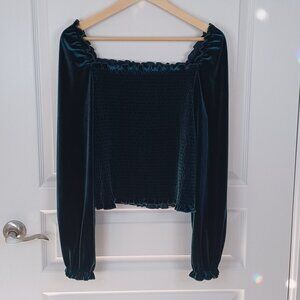 Laundry By Shelli Secal Off Shoulder Top Women M/L Green Velvet Whimsigoth