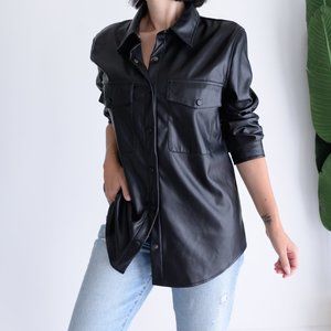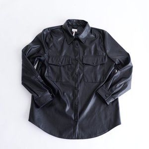 Laundry By Shelli Segal Black Faux Leather Button Shacket Jacket Size Large