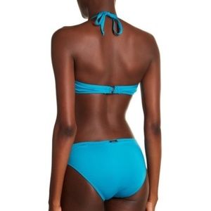 Flirty lace trims this scoop neck bralette top for a stylish fun in the sun look.