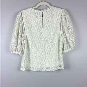 Laundry By Shelli Segal White Lace Puff Sleeve Blouse Size Large