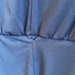 Beautiful, flattering cut on this easy to wear navy dress with “gold” buckle detail at hip. Worn by my mom on a cruise. Very gently previously worn.