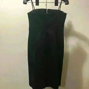 Simple black dress With lace design on chest area Mid chest is boned (see last photo) Tag size: 6 Pit to pit: 17in Shoulder to hem: 37 (strap is adjustable) ***Please note that measurements are approximation only & has been done with dress laid on a flat surface
