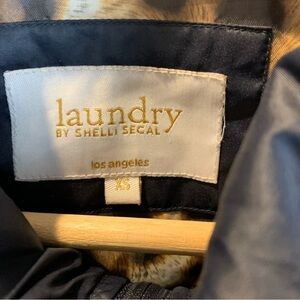 Laundry by Shelli Segal Black Puffer Coat Removable Hood Cheetah Lining sz XS