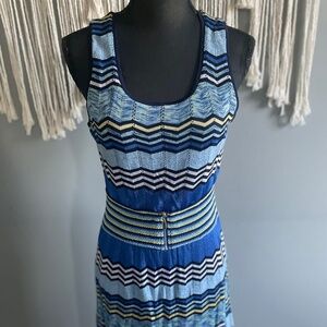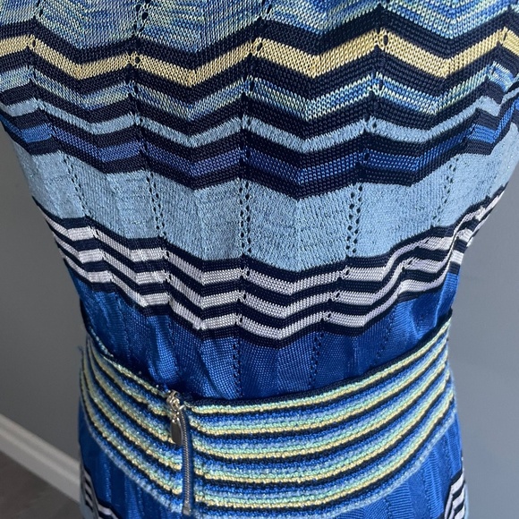 Laundry by Shelli Segal Dress Mixed Zigzag Crochet Knit Dress Blue