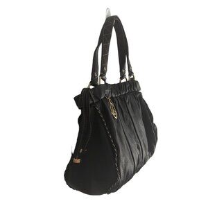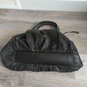 This is a black leather duffle purse by Laundry by Shelli Segal.