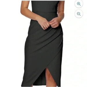 Laundry by Shelli Segal black stretch crepe midi cocktail party dress sz 16