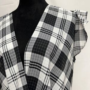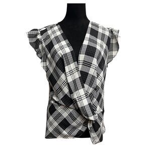 Keywords: pullover, sold at Nordstrom, blouse, casual top, black top, tops on sale, V-neck, plaid