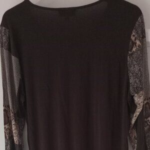 Laura 3/4 sleeves women's blouse is brown with a white/beige square design large