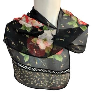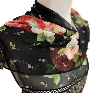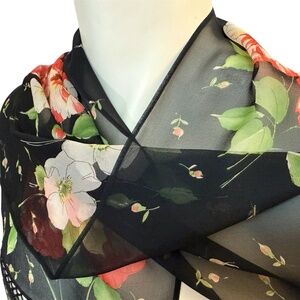 Laura Ashley 100% Silk Black Floral Chiffon Scarf 🇬🇧 – Red & White Blooms