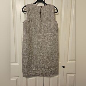 Laura Ashley Beige Tan Sleeveless V-Neck Sheath Midi Dress 100% Linen, SZ 10