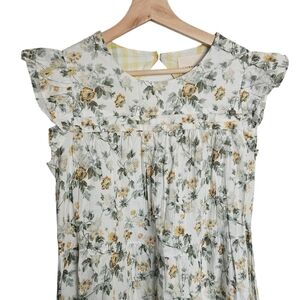 Laura Ashley Floral Ruffle Sleeve and Plaid Accents Dress Size 4