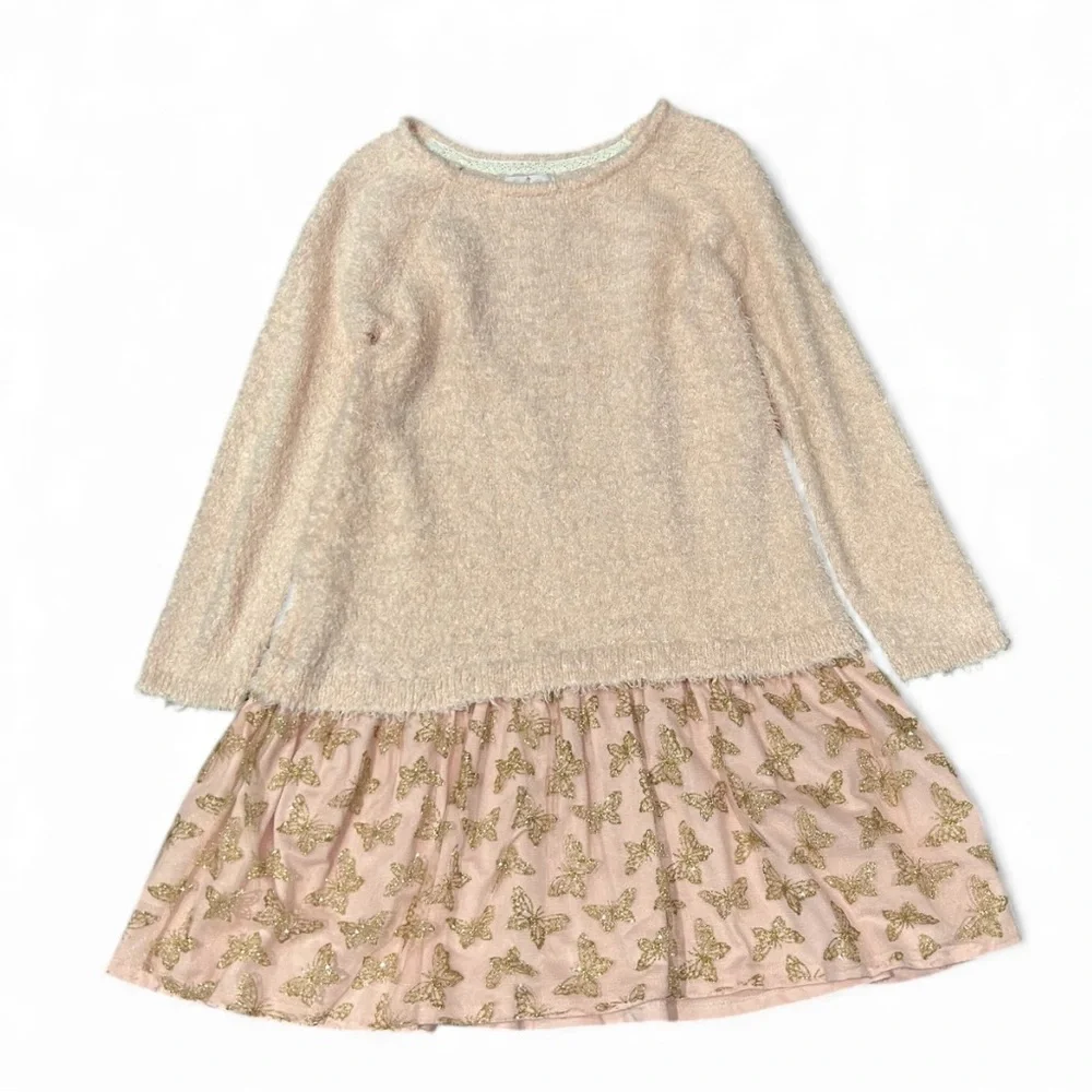 Elegant dress with a pink bodice and cream lace skirt. Ideal for special events.
