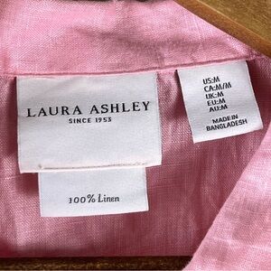 Laura Ashley Pink Size Medium Puff Sleeve 100% Linen Top Button Up Blouse Collar