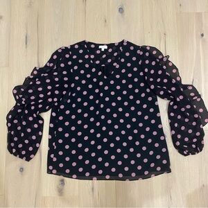 Laura | Black Polka Dot Ruffle Sleeve Long Sleeve Blouse 🖤