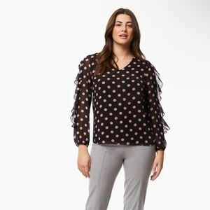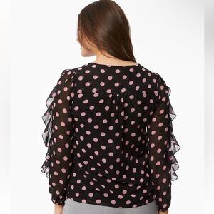 Laura | Black Polka Dot Ruffle Sleeve Long Sleeve Blouse 🖤