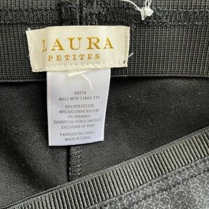 Sleek black leggings by Laura. Perfect for workouts or casual wear. Strechy and comfortable. Size estimated is medium but please review measurements before buying since I do not have the size tag.
