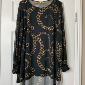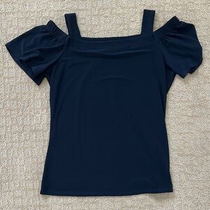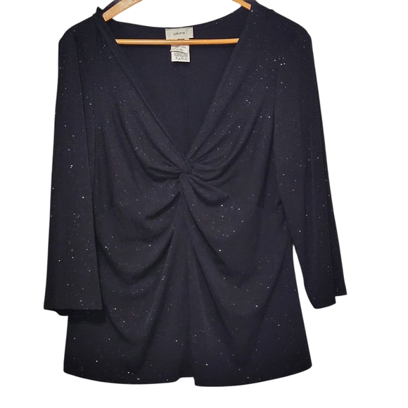 This elegant black top features a subtle sparkle, perfect for any occasion. Its stylish design adds a touch of glamour to your wardrobe.