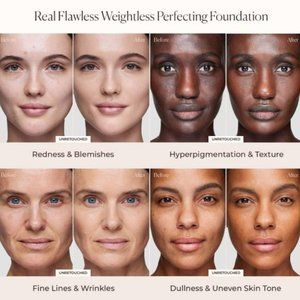Brand new Laura Mercier Real Flawless Weightless Perfecting liquid Foundation in 5C1 Sepia, medium deep with cool undertones. A weightless foundation that blurs the line between makeup and skin with medium-buildable coverage, waterproof wear, and up to 12 hours of fade-proof wear. Medium coverage. Natural finish.