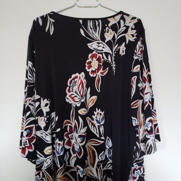 A Laura Plus black blouse with flashes of red, blue and yellow to brighten it up. :) Has been lightly worn.