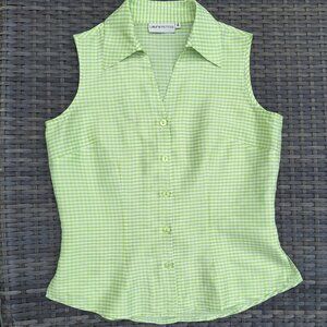 Laura Petite 100% Silk Collar Sleeveless Top Summer Lime Green