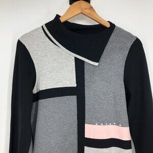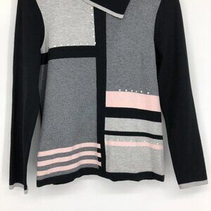 Laura Petites Black Grey Pink colorblock long sleeve Fold-Over Neckline Collar M