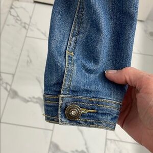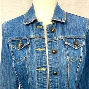 Laura Petites Medium Wash Denim Jacket Fitted Silhouette & Point Collar Size S