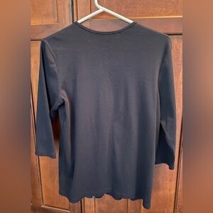 Laura Petites Navy 3/4 Sleeve Zip-Front Top – Size Medium Petite