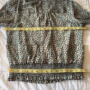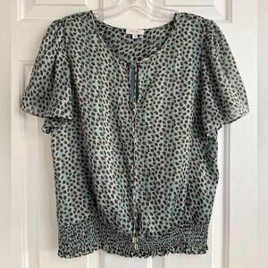 Cheetah Print Flutter Sleeve Laura Petites Teal Metallic Gold Thread Sheared Elastic Waist Blouse 8P