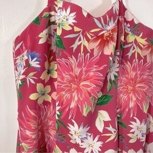 Laura Pink Floral Halter Dress Sweetheart Neckline Hawaiian Flowers Size M