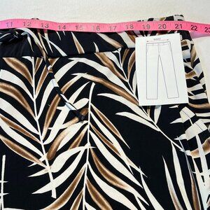 Make a statement with these Laura Plus pants in size 3X, featuring a bold tropical leaf print in earthy tones of brown, black, and white. Designed with a relaxed fit and adjustable drawstring waistband, they blend comfort and style seamlessly.