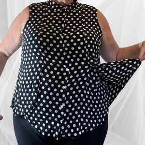Laura Plus Black & White Polka Dot Sleeveless Button-Front Blouse – Size 18