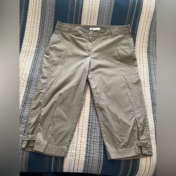 Laura Plus Cotton capris, tan, size 16, button-tab hem detail