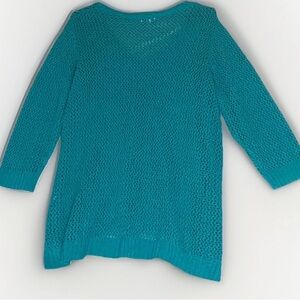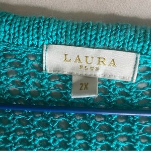Laura Plus Open Knit Pullover Turquoise Sweater Size 2X Relaxed Fit Airy