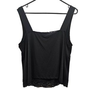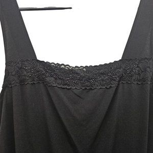 Elegant Laura Plus Petites black camisole tank top, embellished with lace trim and sewn-on beads. Square neckline adds to its charm. Ideal for casual or formal occasions.