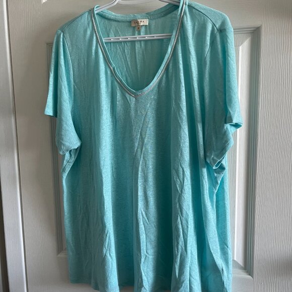 Laura Plus Turquoise V-Neck Short Sleeve TShirt - Size 2x GUC