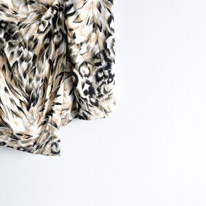 Introducing this stunning wrap knit top from Laura Plus, specifically designed for the modern plus size woman. This beautiful animal print top will make the perfect wardrobe essential, with its flattering wrap fit and short sleeves. Now available in size 3X, this blouse is sure to make a statement.