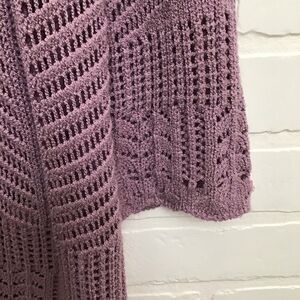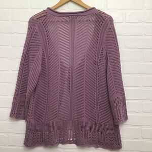 Laura Plus 1X Lilac Crochet Knit Cardigan Long Sleeve Open Front Lightweight