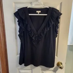 Elevate your style with the Laura brand black ruffled V-neck top. This chic piece adds a touch of style to any outfit.