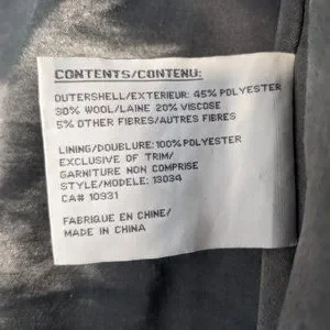 Wool-blend pea coat with removable belt. Some light wear on the inner lining but the outside is in excellent condition. Measures 17.5" across the chest.