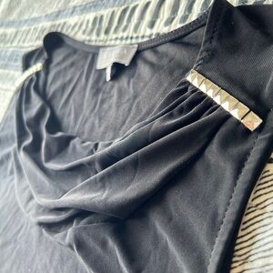 Laura Womens Black Crowl Neck Silver Studded Details Feminine Top Medium