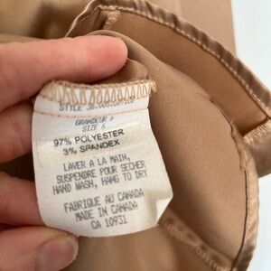 This elegant tan blouse offers a sophisticated look with its sleek design and comfortable fit. Perfect for any occasion. Size 6 like new