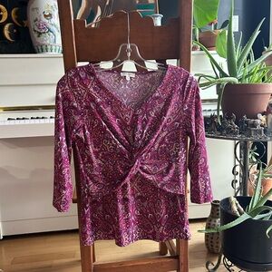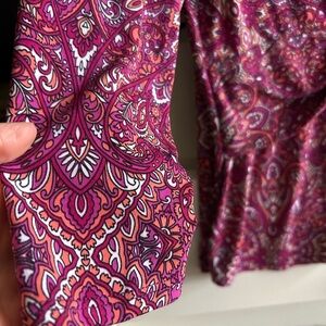 Elevate your style with this vibrant paisley V-neck top. Perfect for any occasion, this top features a flattering fit and eye-catching design. Add a pop of color to your wardrobe with this must-have piece.
