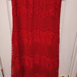 Laura size 4 long red dress 54% nylon, 46% cotton and lining 100% polyester