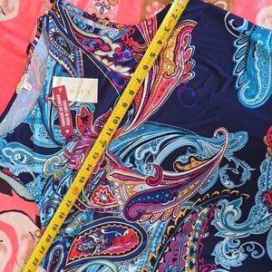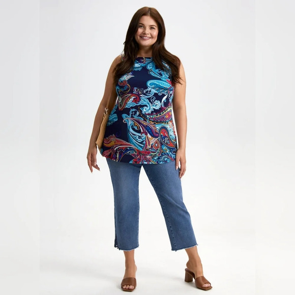 Make a statement with the contrasting hues of our paisley print sleeveless top! Pair it with neutral bottoms or jeans to let your outfit do the talking.
