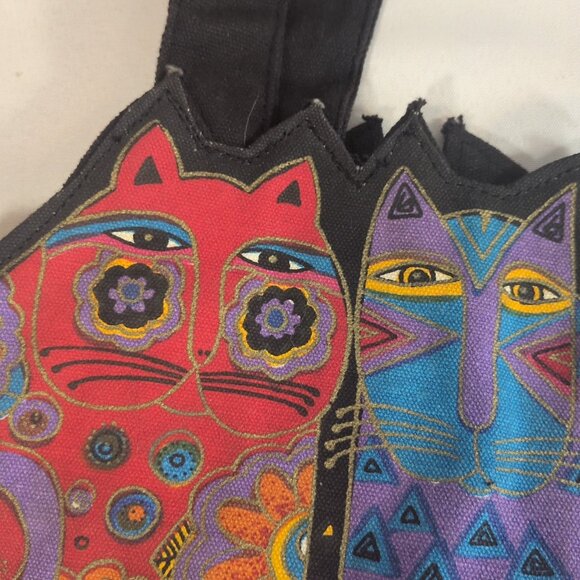 Laurel Burch Cat Shoulder Bag Purse Black Multicolor Tote Cutout Feline Friends