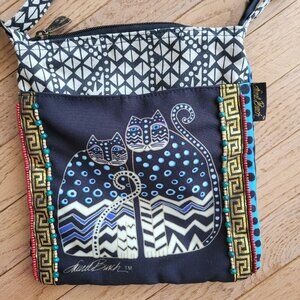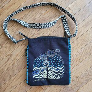 Laurel Burch Crossbody Tote with Zipper Top Spotted Cats