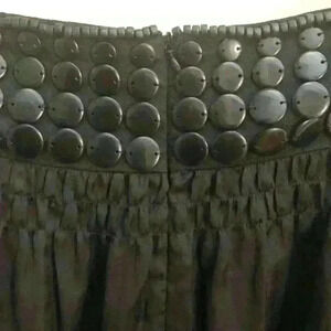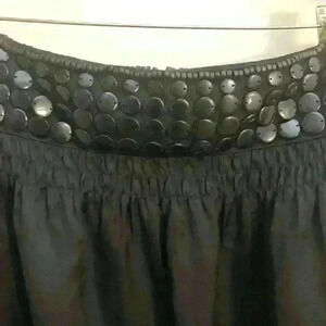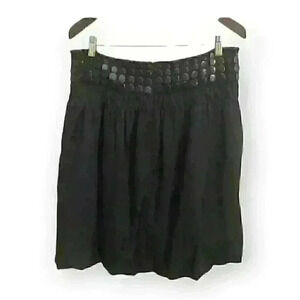 Laurel Escada Flowy Black Bubble Skirt Wooden Beads Button Accent