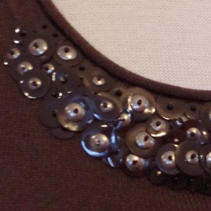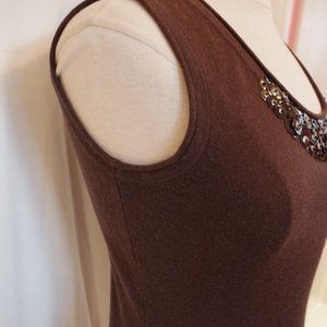 Like new Laurel sleeveless chocolate knit top with decorative embellishment at scoop neckline.