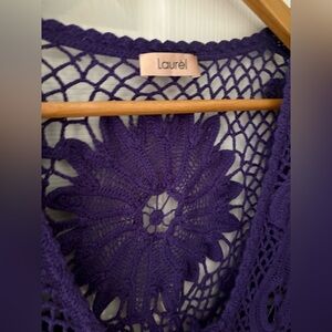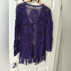Laurel crochet purple long sleeve fringe open front with tie size large top knit
